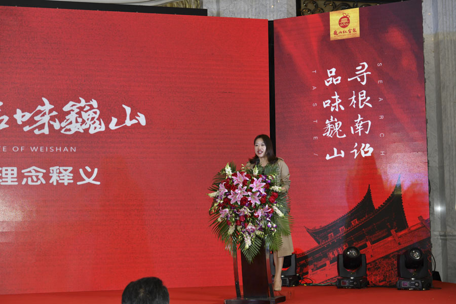 發(fā)布會(huì)上,云南蔚嵐信息技術(shù)有限公司副總周晶晶詳細(xì)闡述了區(qū)域公共品牌的創(chuàng)作過(guò)程,包含了品牌定位、設(shè)計(jì)理念、設(shè)計(jì)應(yīng)用、擬人形象等,并強(qiáng)調(diào)了此次發(fā)布會(huì)以品牌——“尋根南詔·品味巍山”為活動(dòng)主題的意義。從歷史、產(chǎn)地、種植和品質(zhì)等四個(gè)方面,總結(jié)突出了“巍山紅雪梨”的特性,同時(shí),也詮釋了“巍山紅雪梨”的區(qū)位優(yōu)勢(shì)、源產(chǎn)地優(yōu)勢(shì)、精細(xì)化的科學(xué)管理優(yōu)勢(shì)、產(chǎn)品品質(zhì)優(yōu)勢(shì)以及現(xiàn)有產(chǎn)業(yè)扶持政策優(yōu)勢(shì)等,從而體現(xiàn)了品牌價(jià)值和品牌發(fā)展戰(zhàn)略。