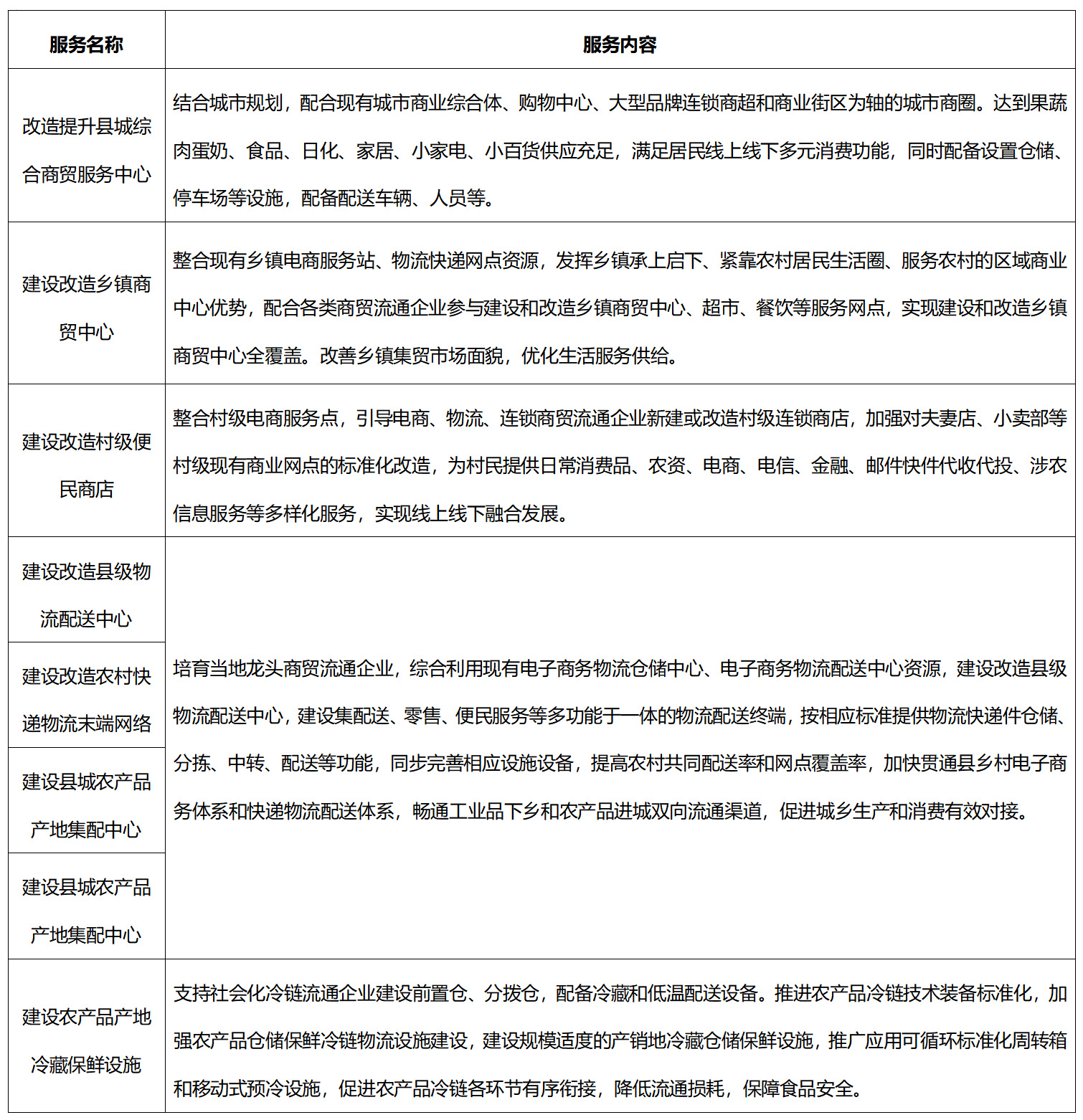 縣域商業(yè)建設行動以完善縣鄉(xiāng)村商業(yè)網(wǎng)絡體系和農(nóng)村物流配送 “三點一線”為重點,加快補齊農(nóng)村商業(yè)設施短板,引導商貿流通企業(yè)轉型升級,推動縣域商業(yè)高質量發(fā)展。完善縣域統(tǒng)籌,以縣城為中心、鄉(xiāng)鎮(zhèn)為重點、村為基礎的農(nóng)村商業(yè)體系?;緦崿F(xiàn)縣城有連鎖商超和快遞物流配送中心、鄉(xiāng)鎮(zhèn)有商貿中心和物流配送站、村村有連鎖便利店并通快遞,農(nóng)產(chǎn)品現(xiàn)代流通體系趨于完善,工業(yè)品下鄉(xiāng)和農(nóng)產(chǎn)品進城雙向流通渠道更加暢通,農(nóng)村居民收入和農(nóng)村消費持續(xù)提升。