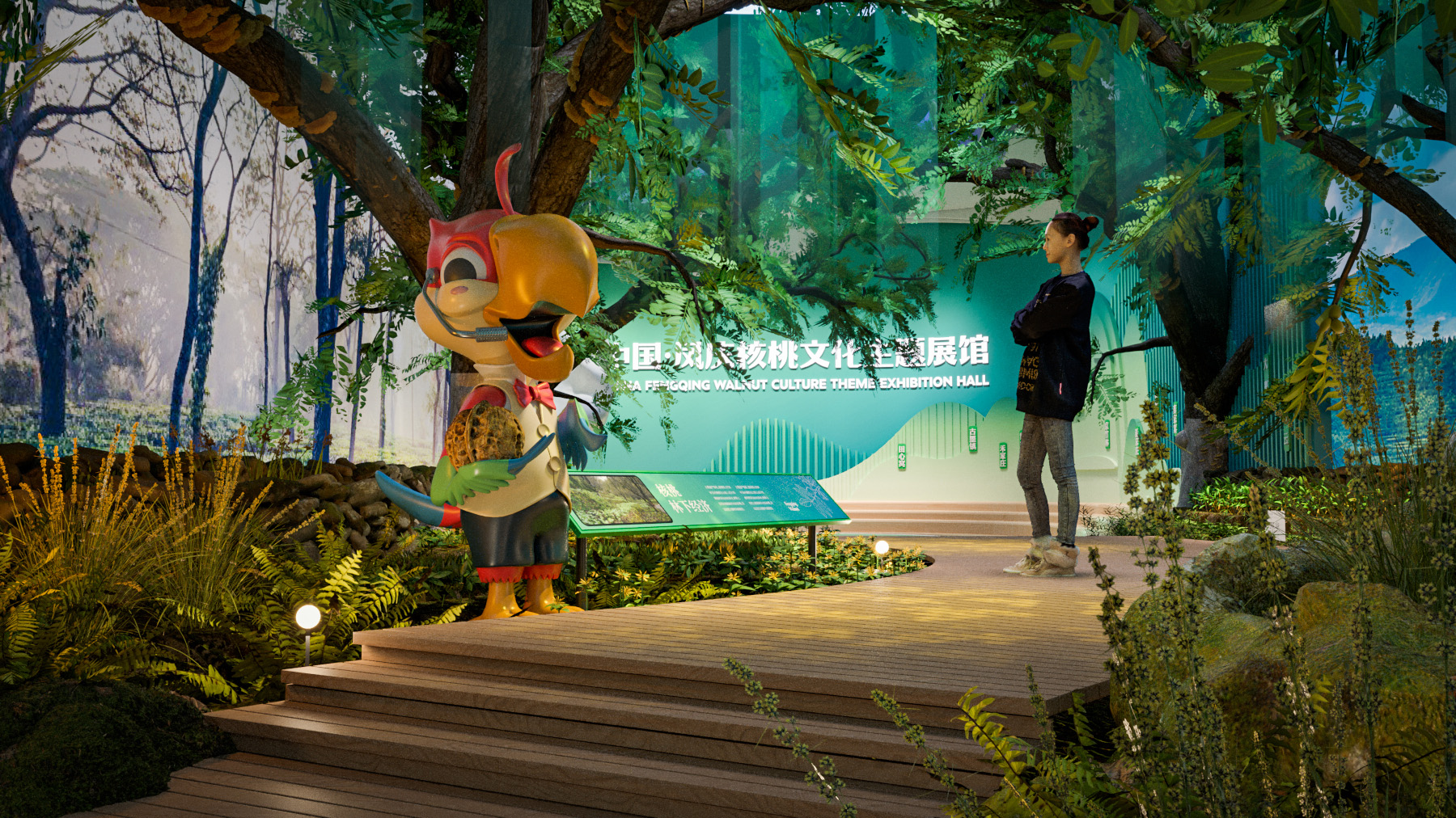 在地面上投影出一塊畫面,利用紅外攝像頭進(jìn)行動作識別捕捉,當(dāng)參觀者走到投影區(qū)域內(nèi),投影畫面就會隨之變動,讓參與者能夠有一絲趣味性。