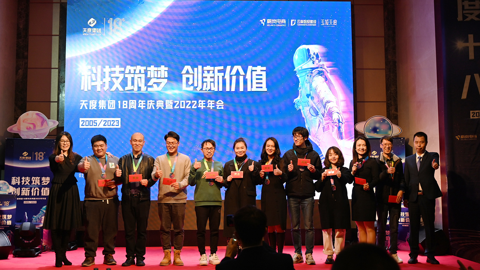 2023年1月8日,科技筑夢(mèng)·創(chuàng)新價(jià)值—天度集團(tuán)18周年慶典暨2022年年會(huì)在西南賓館圓滿落幕,集團(tuán)及各公司同仁齊聚一堂,共慶天度集團(tuán)發(fā)展成果,共享年會(huì)歡樂時(shí)光!