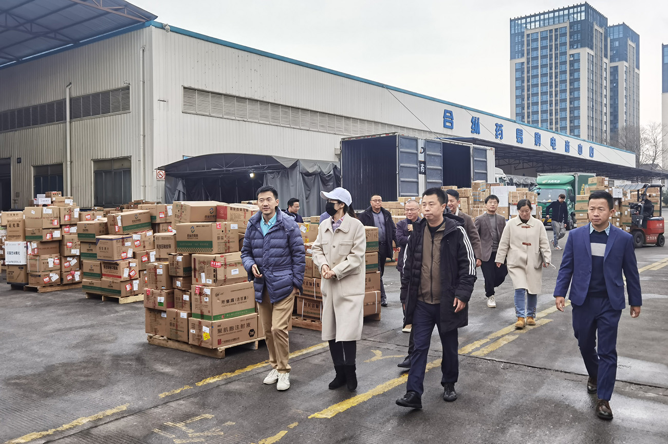 14日下午,考察團(tuán)到達(dá)此次考察交流的第一站,四川合縱藥易購(gòu)醫(yī)藥股份有限公司電商基地,受到了四川合縱藥易購(gòu)醫(yī)藥股份有限公司董事、高級(jí)副總裁李宇欣帶領(lǐng)的相關(guān)管理團(tuán)隊(duì)的熱情接待。四川合縱藥易購(gòu)醫(yī)藥股份有限公司是中國(guó)首家醫(yī)藥產(chǎn)業(yè)互聯(lián)網(wǎng)上市企業(yè),是一家數(shù)智醫(yī)藥大健康生態(tài)型企業(yè)。業(yè)務(wù)涵蓋醫(yī)藥新零售、醫(yī)藥B2B電商、數(shù)字化賦能、醫(yī)藥批發(fā)、醫(yī)藥公共服務(wù)、醫(yī)藥供應(yīng)鏈、智能物流、C端矩陣、互聯(lián)網(wǎng)醫(yī)療、醫(yī)藥健康金融、大健康管理等眾多板塊。為全產(chǎn)業(yè)鏈合作企業(yè)提供優(yōu)質(zhì)產(chǎn)品、先進(jìn)平臺(tái)、豐富資源、創(chuàng)新技術(shù)與完善服務(wù),助力生態(tài)伙伴加速增長(zhǎng)與永續(xù)發(fā)展,共同構(gòu)建數(shù)智醫(yī)藥大健康產(chǎn)業(yè)鏈新生態(tài)。
