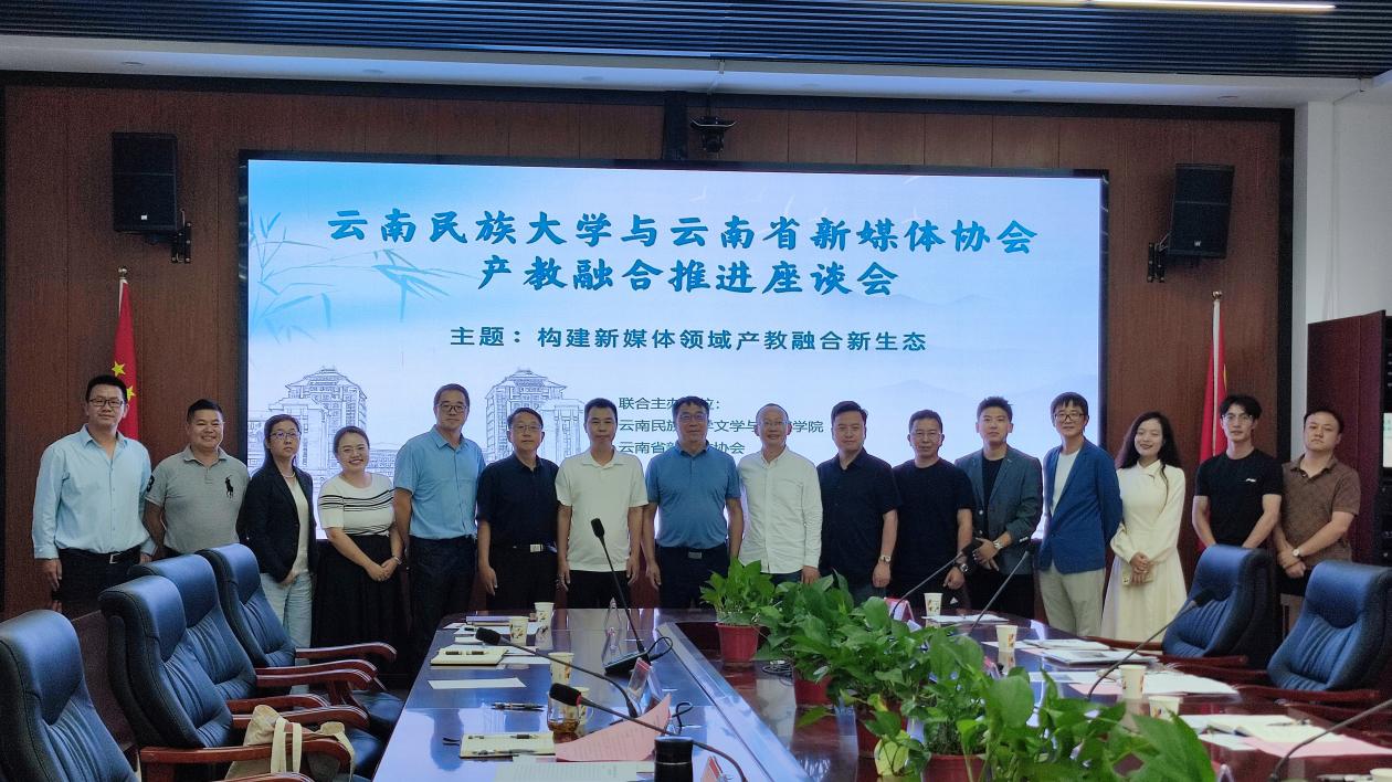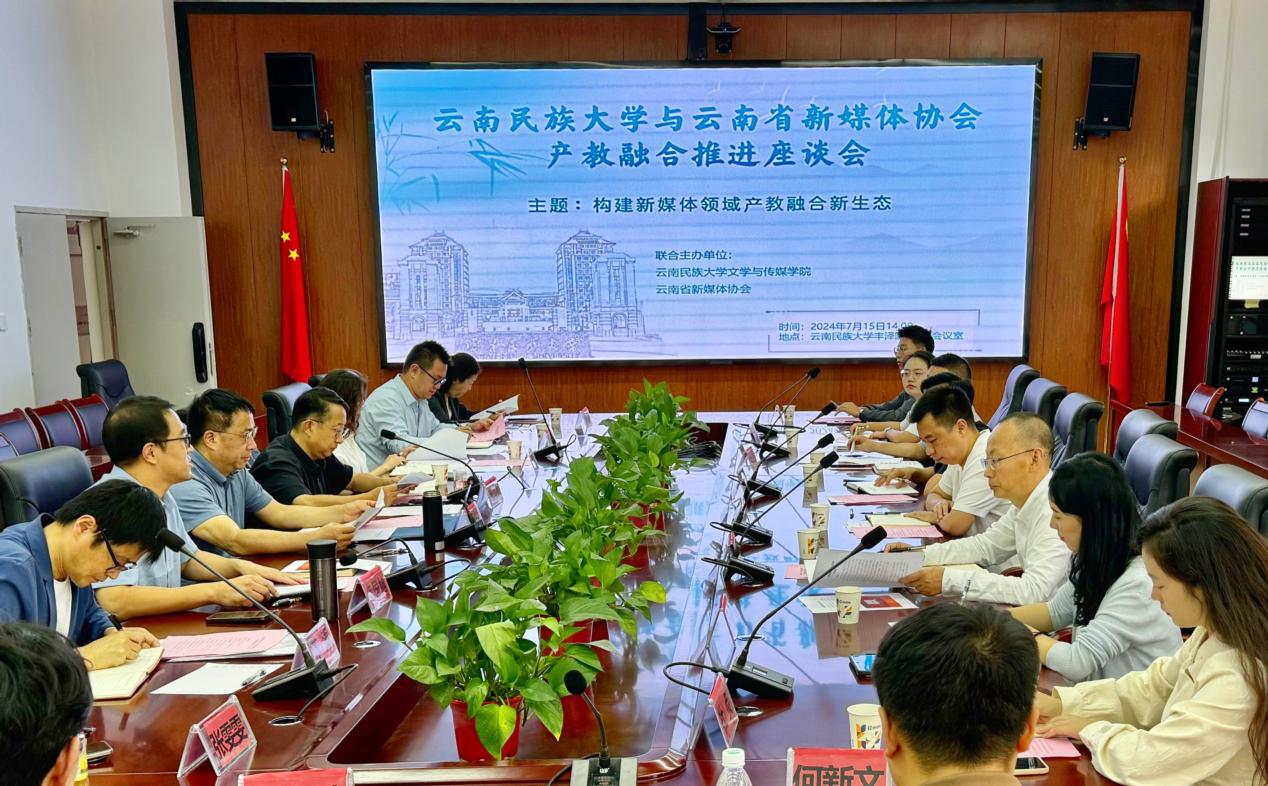 文學(xué)與傳媒學(xué)院副院長陳順堯、許麗華,學(xué)校教務(wù)處教學(xué)研究科科長張勝婷,學(xué)院新聞系主任張雯雯等與會(huì)人員圍繞如何進(jìn)一步深化校企合作和產(chǎn)教融合,完善人才培養(yǎng)模式,新媒體賦能云南經(jīng)濟(jì)社會(huì)發(fā)展、推動(dòng)大學(xué)生實(shí)踐實(shí)訓(xùn)與就業(yè)創(chuàng)業(yè)等內(nèi)容踴躍發(fā)言。大家一致認(rèn)為,云南省新媒體協(xié)會(huì)與云南民族大學(xué)聯(lián)合相關(guān)高校、企業(yè)啟動(dòng)“產(chǎn)教融合共同體”創(chuàng)建工作,并同步推動(dòng)成立“高校專委會(huì)”,建設(shè)開放型公共實(shí)踐實(shí)訓(xùn)基地,不僅滿足社會(huì)對(duì)創(chuàng)新型高質(zhì)量人才的需求,對(duì)推進(jìn)高校教學(xué)改革、提升技術(shù)技能人才培養(yǎng)質(zhì)量,促進(jìn)全省新媒體領(lǐng)域的教育與產(chǎn)業(yè)協(xié)同發(fā)展也具有重要意義。