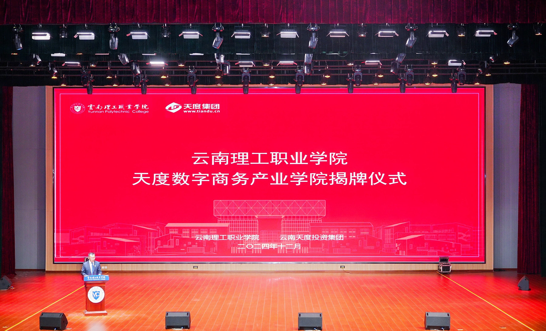 12月5日,云南理工職業(yè)學(xué)院天度數(shù)字商務(wù)產(chǎn)業(yè)學(xué)院簽約揭牌儀式在學(xué)生會堂隆重舉行。此次簽約標(biāo)志著云南理工職業(yè)學(xué)院與云南天度投資集團強強聯(lián)手,共同開啟職業(yè)教育產(chǎn)教融合新篇章。