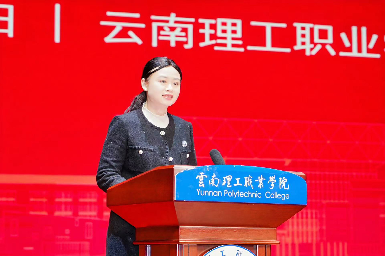 楊陽董事長作致辭,她代表學(xué)校董事會向出席揭牌儀式的領(lǐng)導(dǎo)、嘉賓表示熱烈歡迎,向辛勤努力的雙方團隊表示衷心感謝。她表示,學(xué)校與天度投資集團攜手并進(jìn)、共同探索建立的天度數(shù)字商務(wù)產(chǎn)業(yè)學(xué)院是雙方優(yōu)勢互補、資源共享的典范,更是教育與產(chǎn)業(yè)深度融合、互利共贏的生動實踐。通過這一平臺,校企雙方將共同探索數(shù)字商務(wù)領(lǐng)域的前沿技術(shù)和創(chuàng)新模式,推動產(chǎn)學(xué)研用深度融合,為行業(yè)培養(yǎng)更多具有創(chuàng)新精神和實踐能力的高素質(zhì)人才。她相信,在雙方的共同努力下,天度數(shù)字商務(wù)產(chǎn)業(yè)學(xué)院將不負(fù)眾望,成為云南省乃至全國眾多產(chǎn)業(yè)學(xué)院中的一顆璀璨明珠,為培養(yǎng)更多優(yōu)秀的數(shù)字商務(wù)人才、助力云南省三年行動計劃和“3815”戰(zhàn)略、推動我國數(shù)字經(jīng)濟的繁榮發(fā)展貢獻(xiàn)力量。
