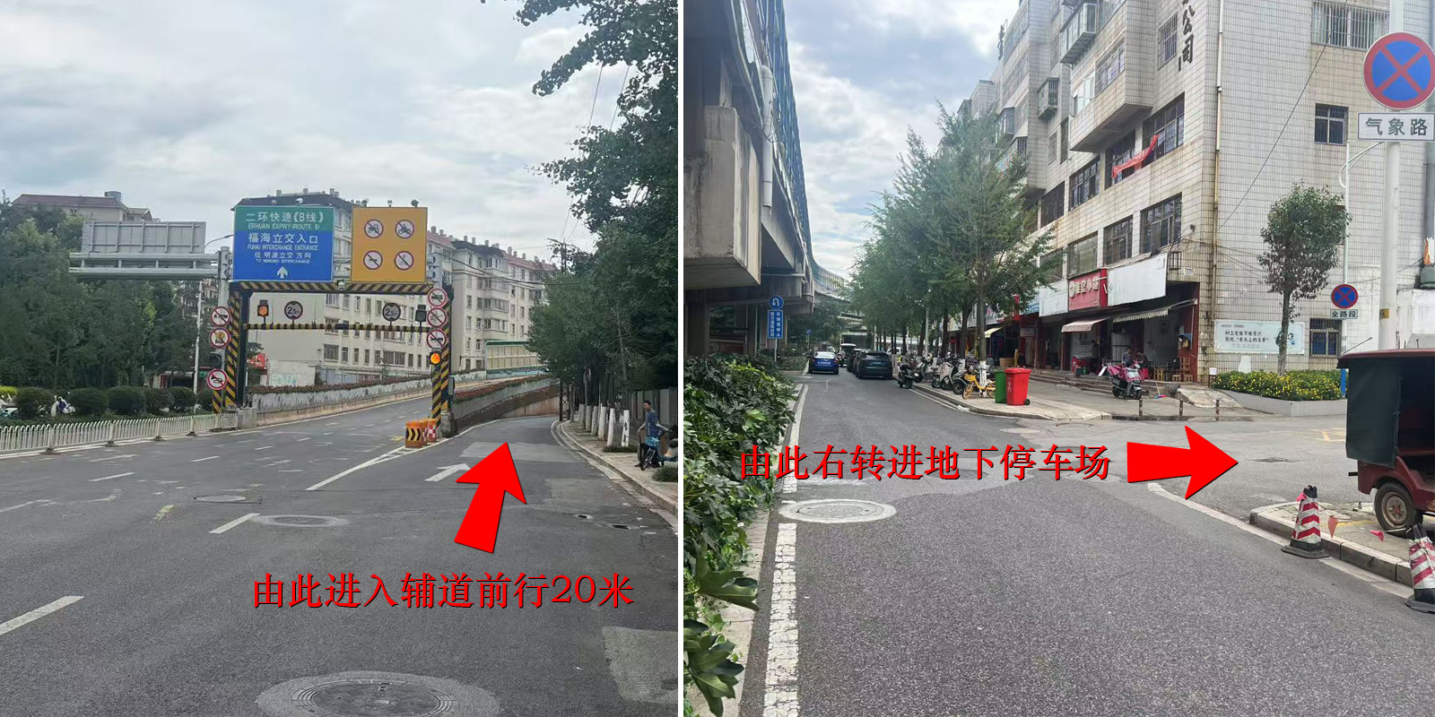 開車路線導(dǎo)航:請(qǐng)沿著氣象路上二環(huán)方向,按左上圖所示走輔道(不要上高架)前行20米,按右上圖所示右轉(zhuǎn)下地下停車場(chǎng),進(jìn)入停車場(chǎng)急左轉(zhuǎn)直行下一層進(jìn)入負(fù)三樓,在A4棟(A座寫字樓)電梯口(天度集團(tuán)專用停車位,旁邊有值班人員)停車,然后坐電梯至8樓。