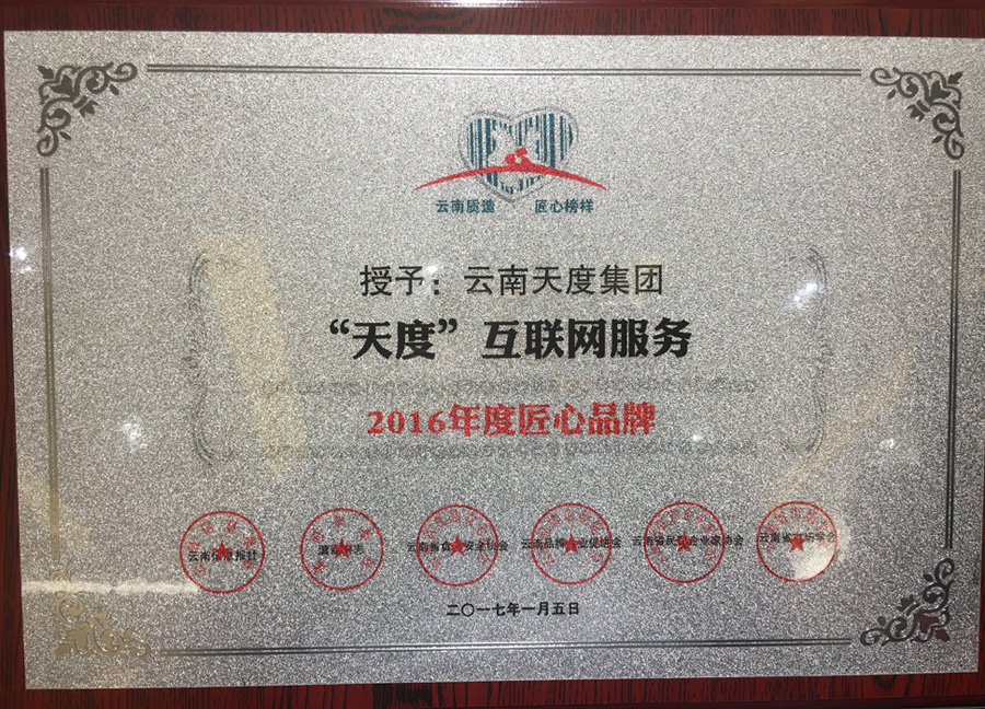 天度集團(tuán)榮獲“2016云南匠心品牌”稱號