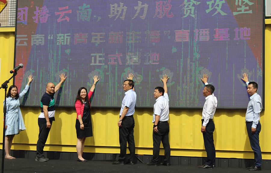 共青團(tuán)云南省委黨組成員、副書記趙攀峰,云南廣播電視臺(tái)黨委委員、紀(jì)委書記曹渭海,云南省委統(tǒng)戰(zhàn)部新的社會(huì)階層人士工作處副處長(zhǎng)歐陽美怡,云南省委網(wǎng)信辦社會(huì)工作處副處長(zhǎng)陳茵,云南廣播電視臺(tái)音樂頻率副總監(jiān)陳友國,云南紡織(集團(tuán))股份有限公司黨委副書記、紀(jì)委書記、云紡科技園執(zhí)行董事李俊,云南天度投資集團(tuán)有限公司董事長(zhǎng)鄭桂文等7位嘉賓共同按下掌紋,開啟本次直播基地活動(dòng)。